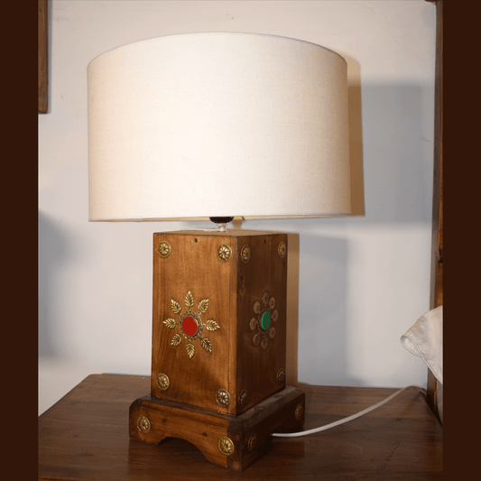 Turk Style Wooden Side Table Lamp Handmade With Stone and Brass Work