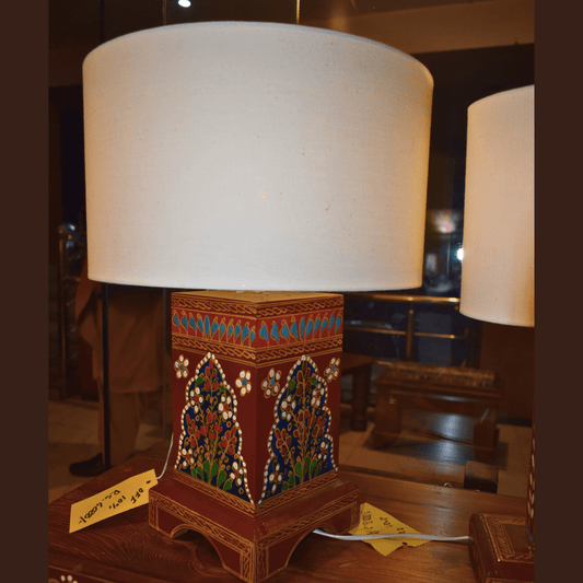 Swati Style Wooden Side Table Lamp Square Handmade With Lacquer Work