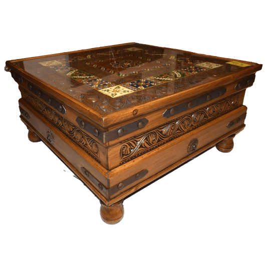 Hand Made Swati Turk Style Square Central Table | Wood Carving Work | Hand Painted