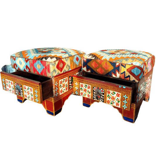 Ottoman Set with kilim fitting With Drawer Handmade Furniture
