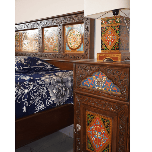 Hand Made Swati Turk Style Wooden Bed with hand paint designs